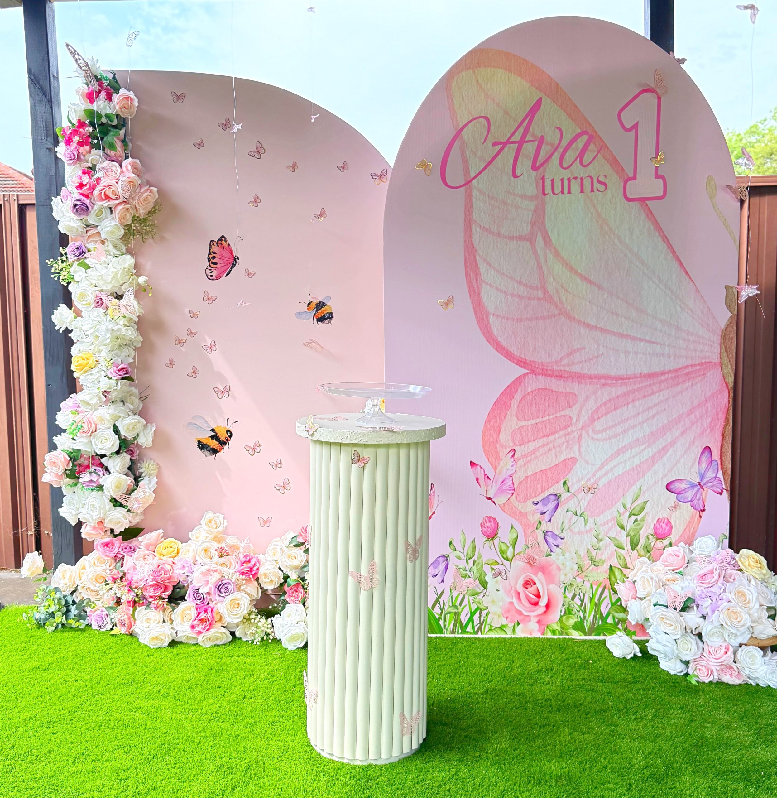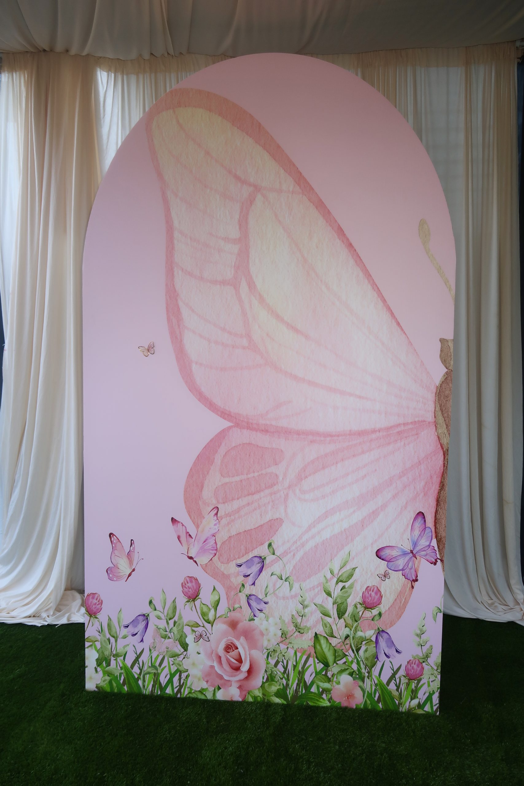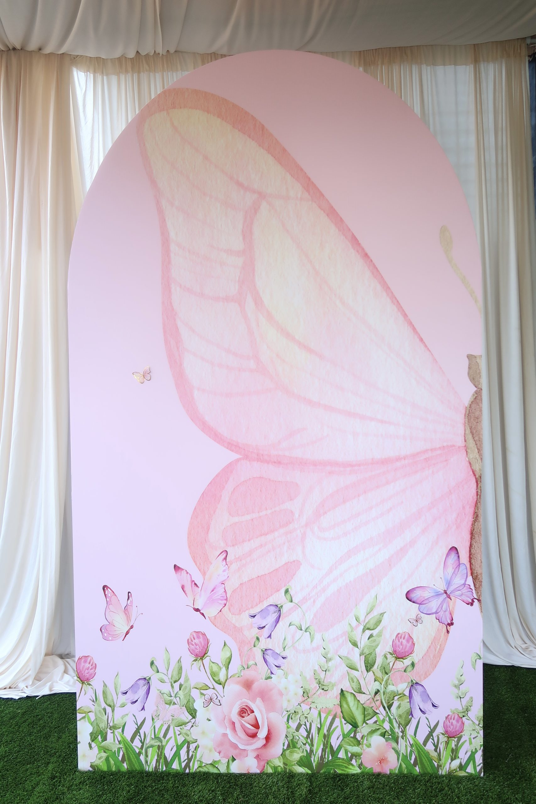 Step into a dreamy, whimsical setting with our Enchanted Butterfly Garden Wall — designed to bring soft, magical charm to your little one’s special day.