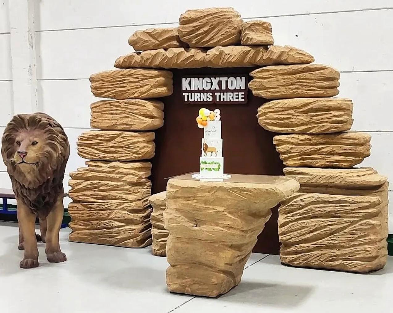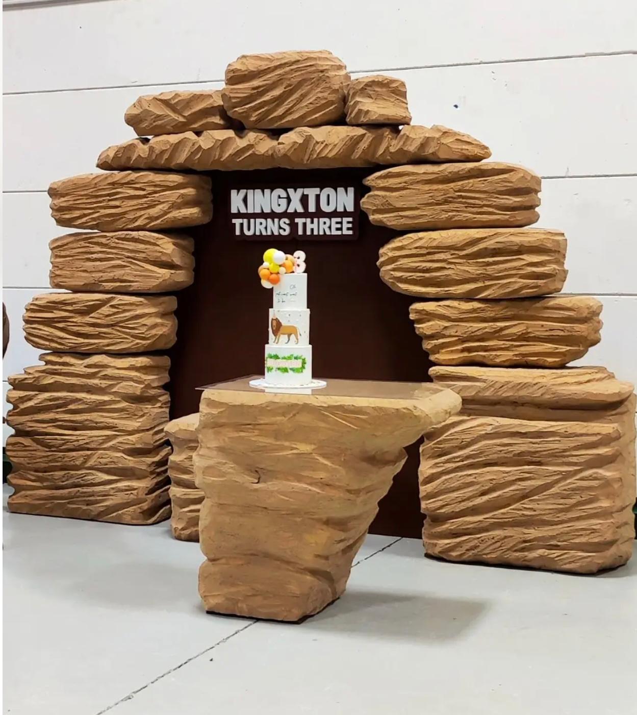 At the heart of this collection is a 2.4m high sandstone-inspired arch cave, beautifully crafted with a realistic stone finish to create a bold yet natural backdrop. Its sculptural, organic design adds depth, texture, and visual impact, instantly becoming the centrepiece of any styled event.