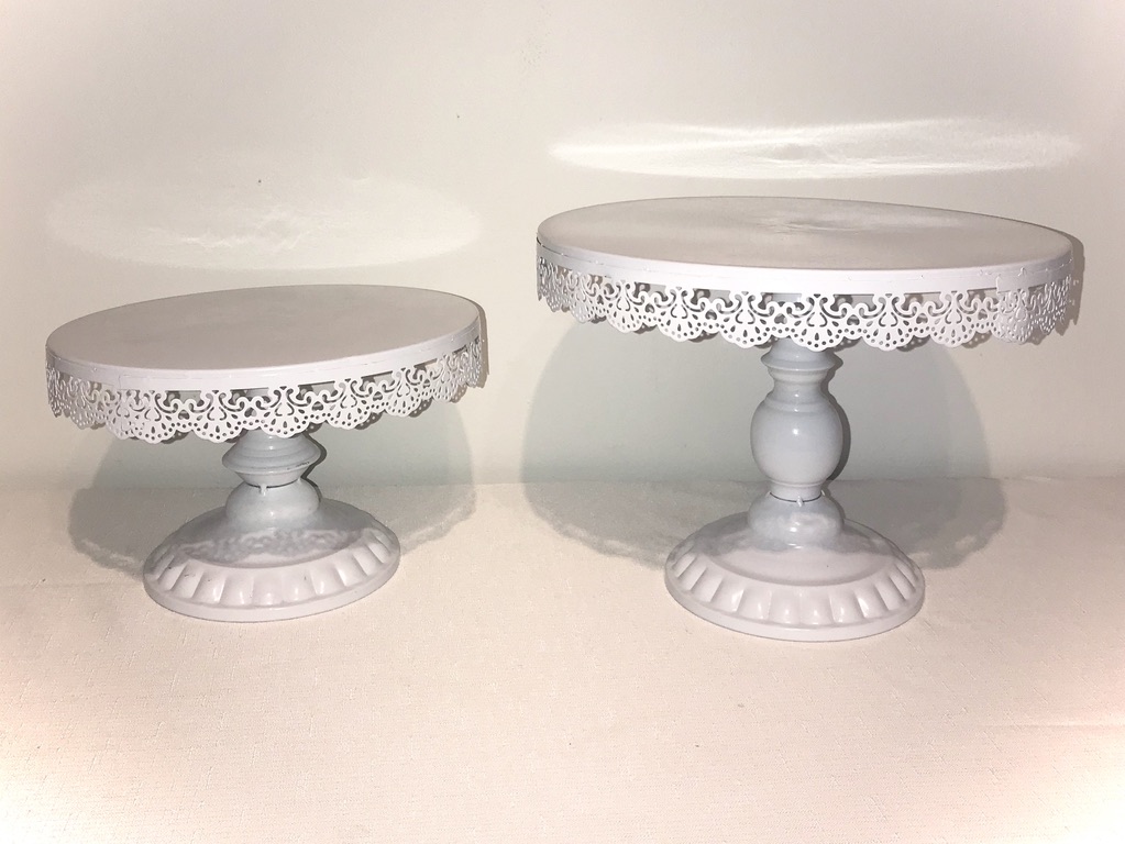 Want to keep it simple? Our white trim cake stands let your desserts take the spotlight!
